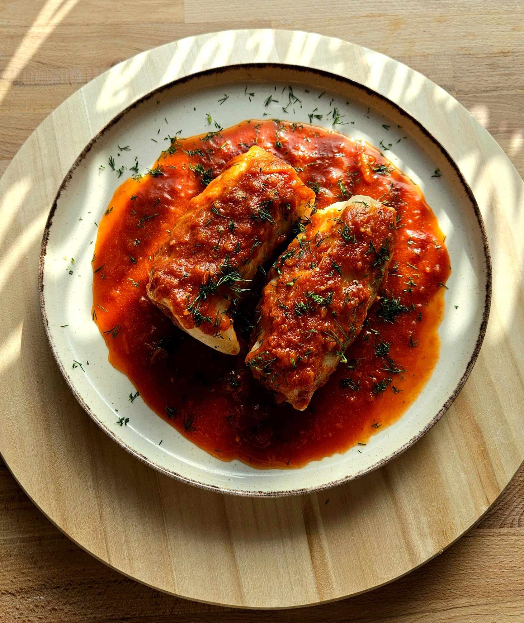 w farszu dodatkowo znajdziecie ziemniaki oraz koperek. Jest niebanalnie, jednak wszystko razem niezwykle do siebie pasuje, a jak smakuje!