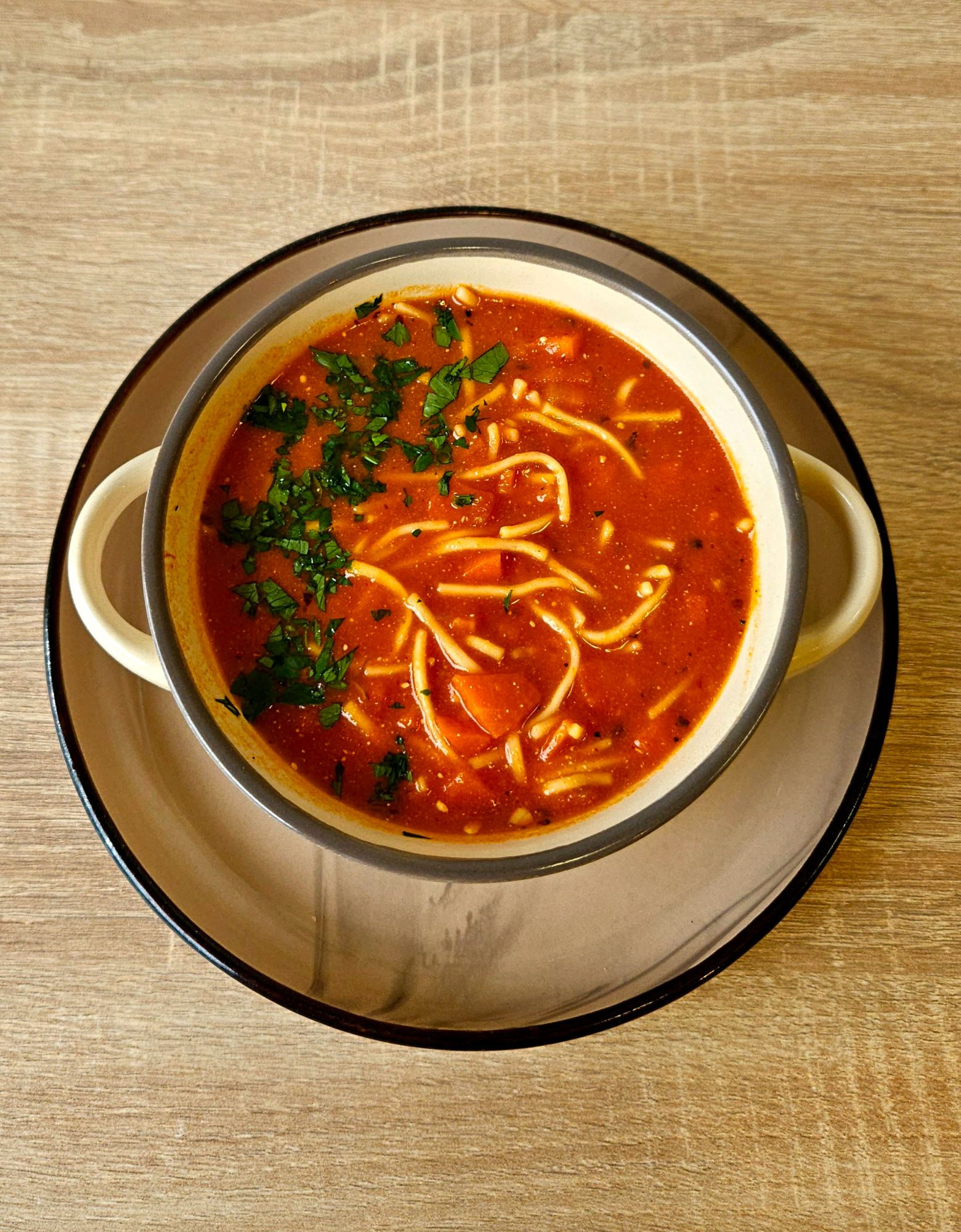 Składniki: mięso wieprzowe pieczone/papryka wędzona/suszone pomidory/chilli